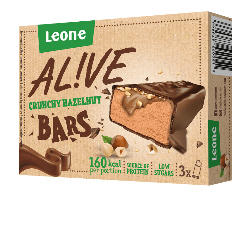 SLADOLED Z OKUSOM LEŠNIKA, LEŠNIKOV PRELIV (12,5 %), OBLIV Z OKUSOM ČOKOLADE (26,7 %) IN KOŠČKI LEŠNIKOV (5,4 %). S SLADILI. Vir beljakovin. Nizka vsebnost sladkorjev. Prekomerno uživanje ima lahko odvajalni učinek.