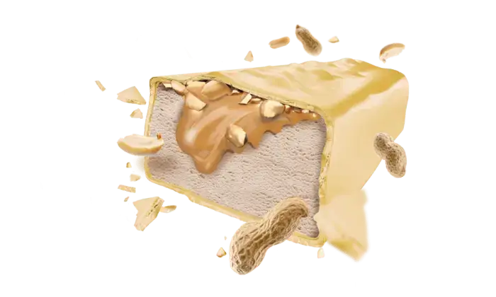 SLADOLED Z OKUSOM ARAŠIDOV S PRELIVOM Z OKUSOM KARAMELE (12,5 %), SLANIMI ARAŠIDI (7,1 %) IN OBLIVOM Z OKUSOM BELE ČOKOLADE (26,8 %). S SLADKORJI IN SLADILI. Vir beljakovin. Visoka vsebnost prehranske vlaknine. Prekomerno uživanje ima lahko odvajalni učinek.