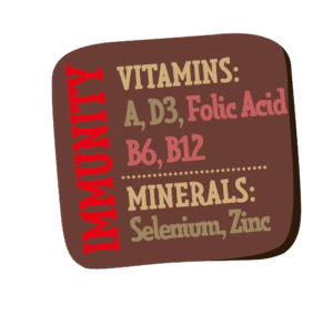 Sestavine: kakavova masa, kakavovo maslo, rižev napitek v prahu, sladilo: eritritol; inulin (7,3 %), izvleček gvarane (1,7 %) (izvleček semen gvarane (Paullinia cupana) v prahu, maltodekstrin, kofein*), pomarančni prah (1 %) (zgoščeni pomarančni sok (50 %), glukozni sirup), emulgator: lecitini (sončnica); naravna aroma pomaranče, sladilo: steviol glikozidi; minerali: cinkov sulfat, natrijev selenit; vitamini: A (retinil acetat), D (holekalciferol), B6 (piridoksin hidroklorid), folna kislina (pteroilmonoglutaminska kislina), B12 (cianokobalamin). *iz zelenih kavnih zrn.