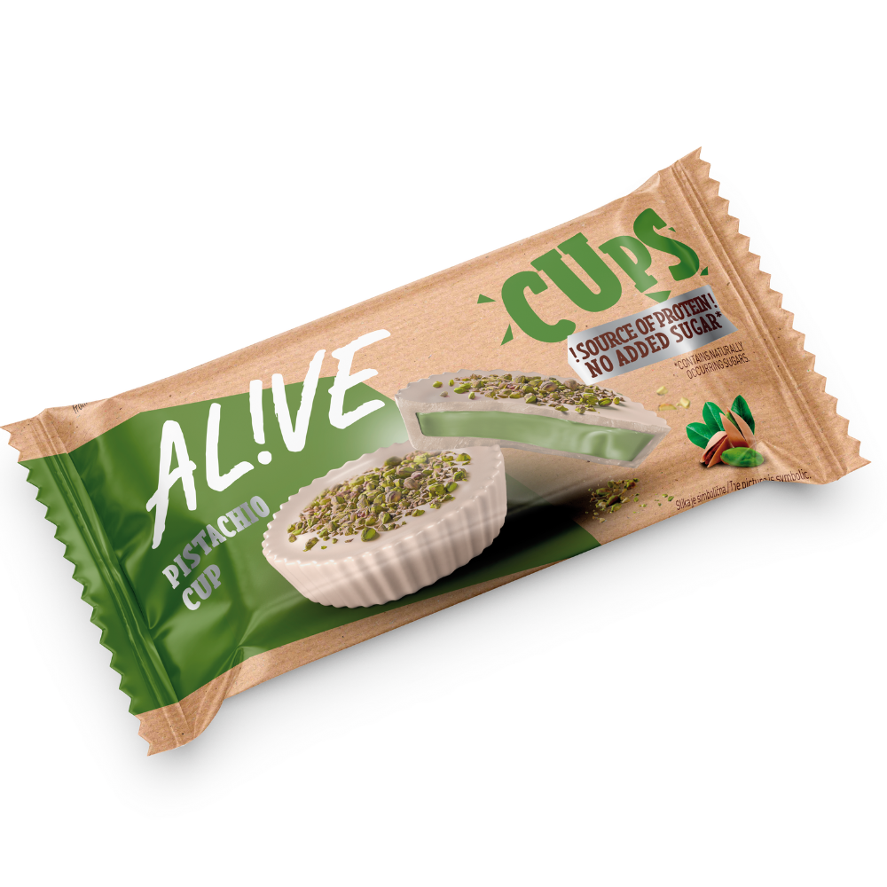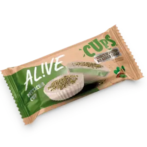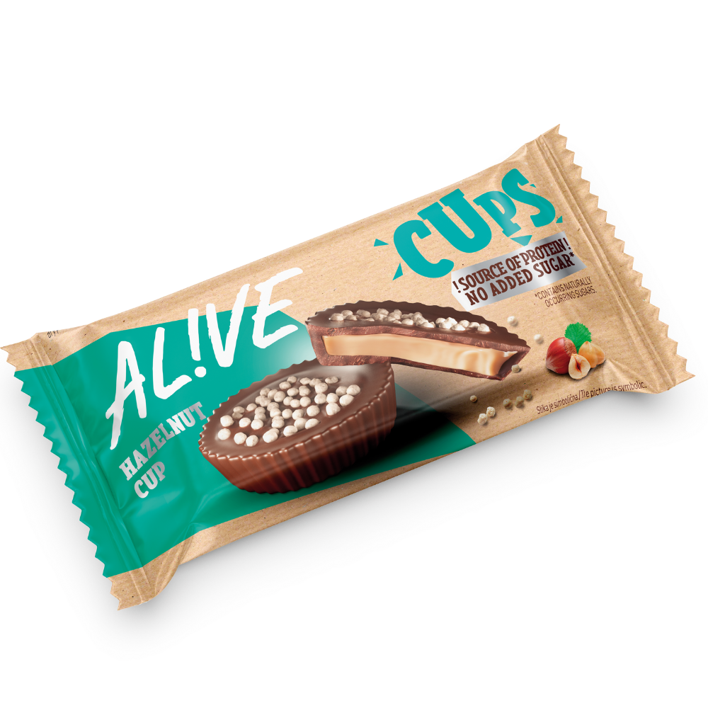 Proteinski cups z namazom lešnik in mlečnim oblivom, ter posutimi žitnimi kosmiči.