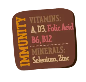 MLEČNA ČOKOLADA Z ARAŠIDOVIM POLNILOM (50 %). VIR PREHRANSKE VLAKNINE. VIR BELJAKOVIN. VIR VITAMINA A, D, B6, FOLNE KISLINE, B12, CINKA IN SELENA.